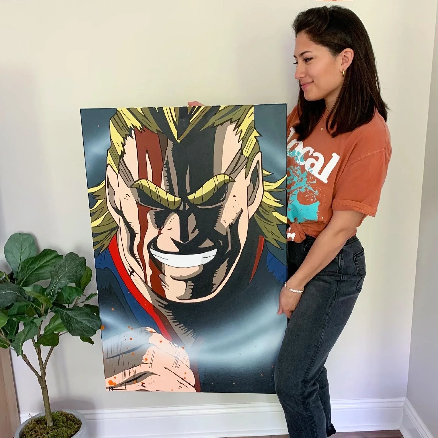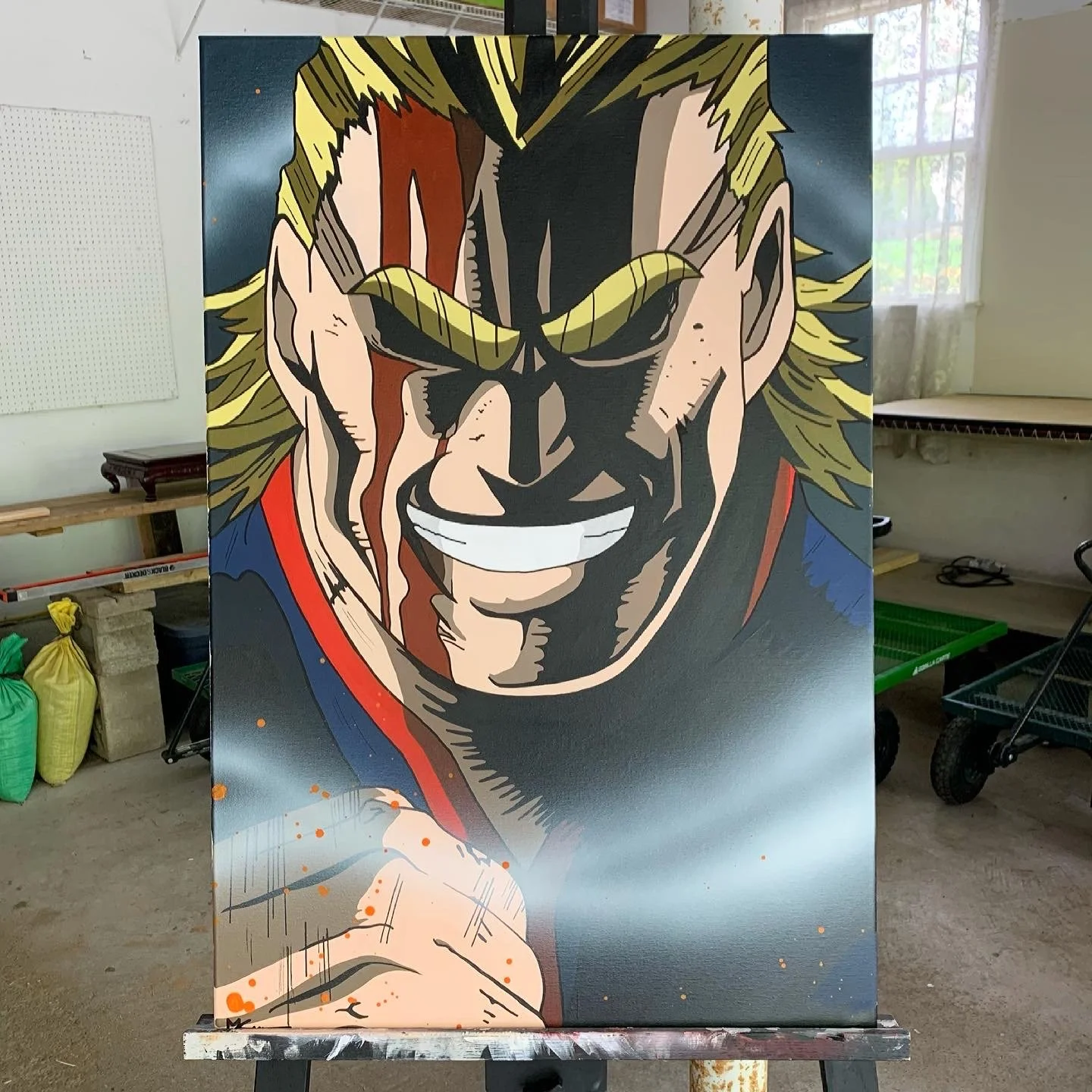 This painting features All Might, a prominent character in the My Hero Academia anime show.
