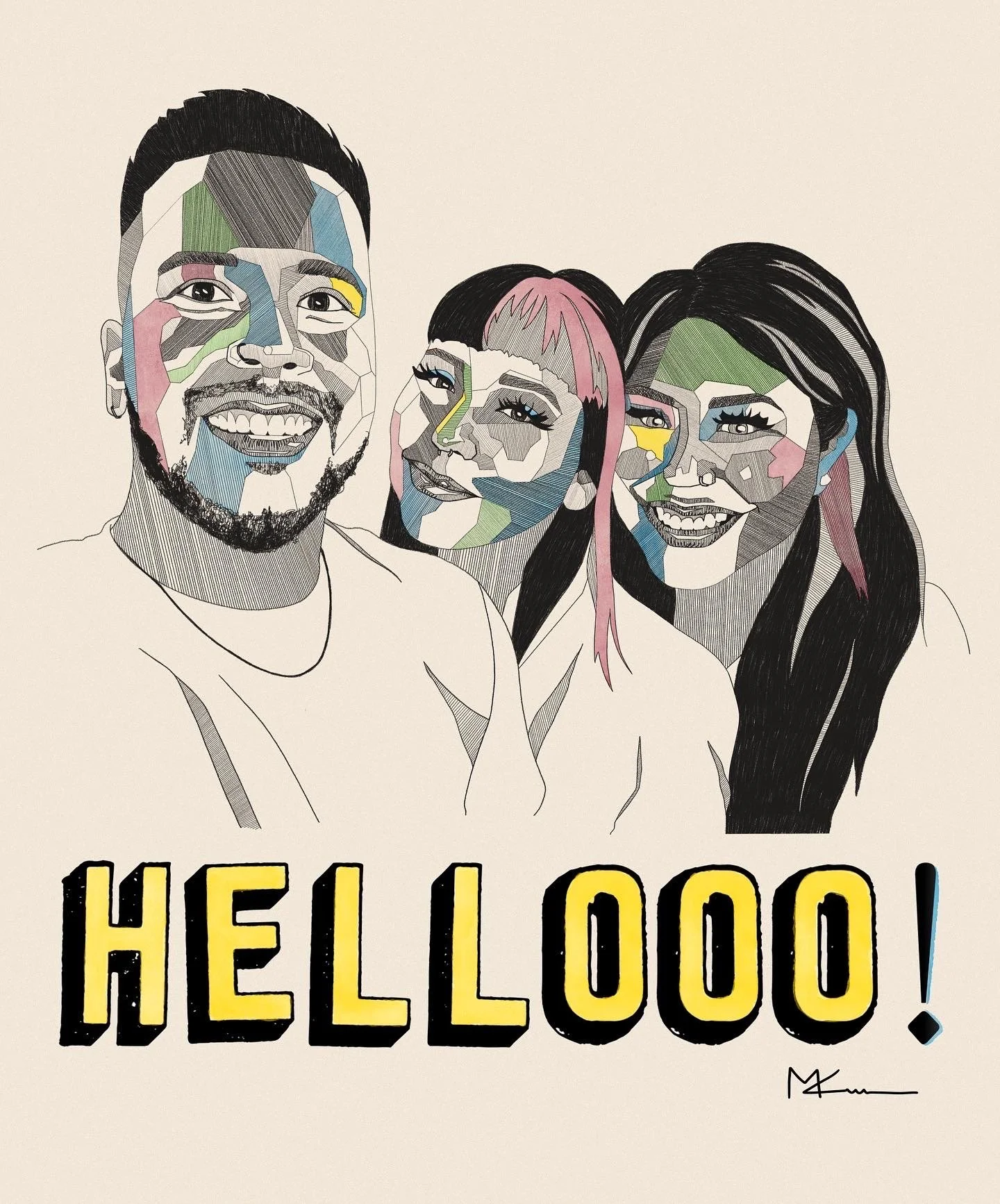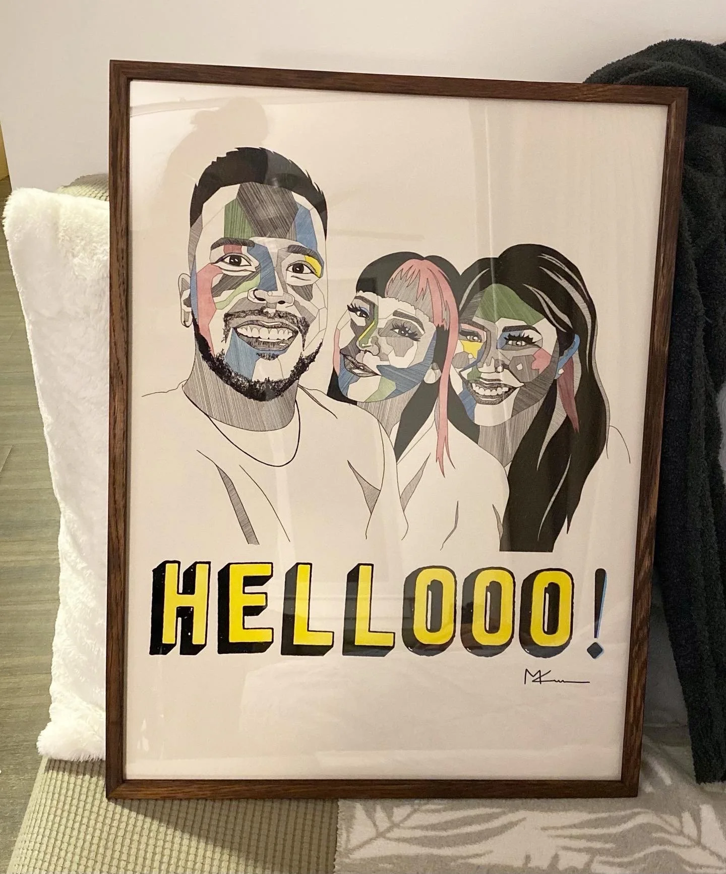 A fun, pop-art inspired, multi-media rendering of this customer and her two friends.